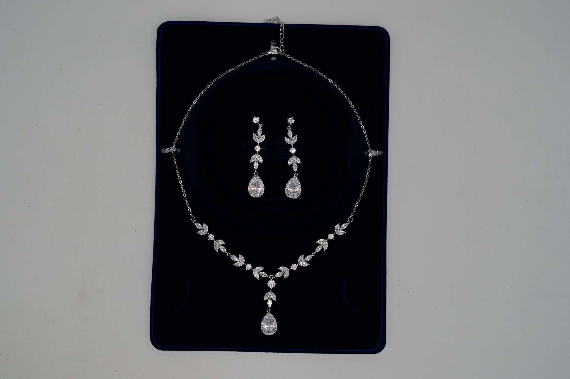 Crystal Floral Statement Necklace & Earrings Set – Silver Tone